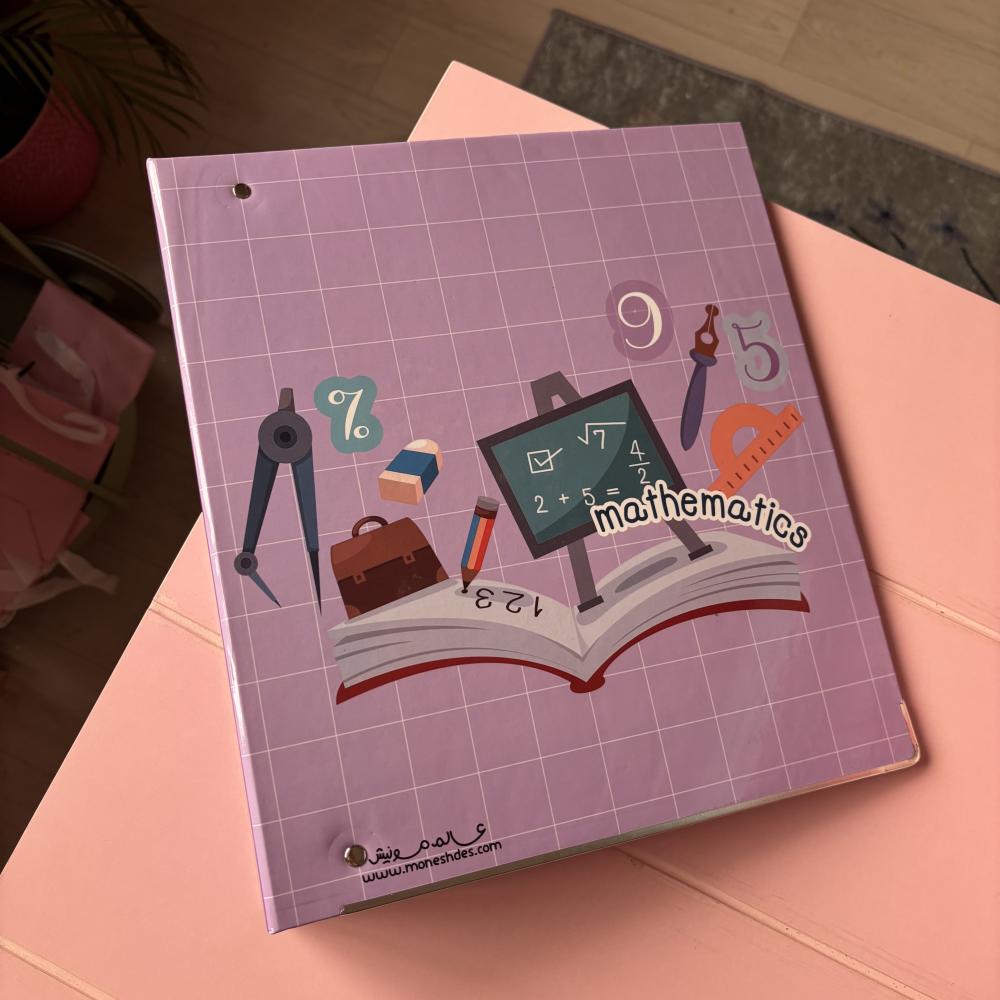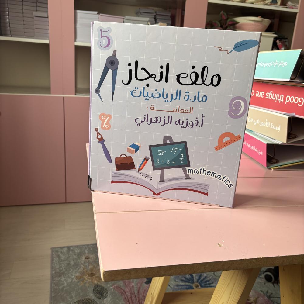 كتابة ملف انجاز مادة الرياضيات ، تحتها اسم المعلمة إيمان احمد