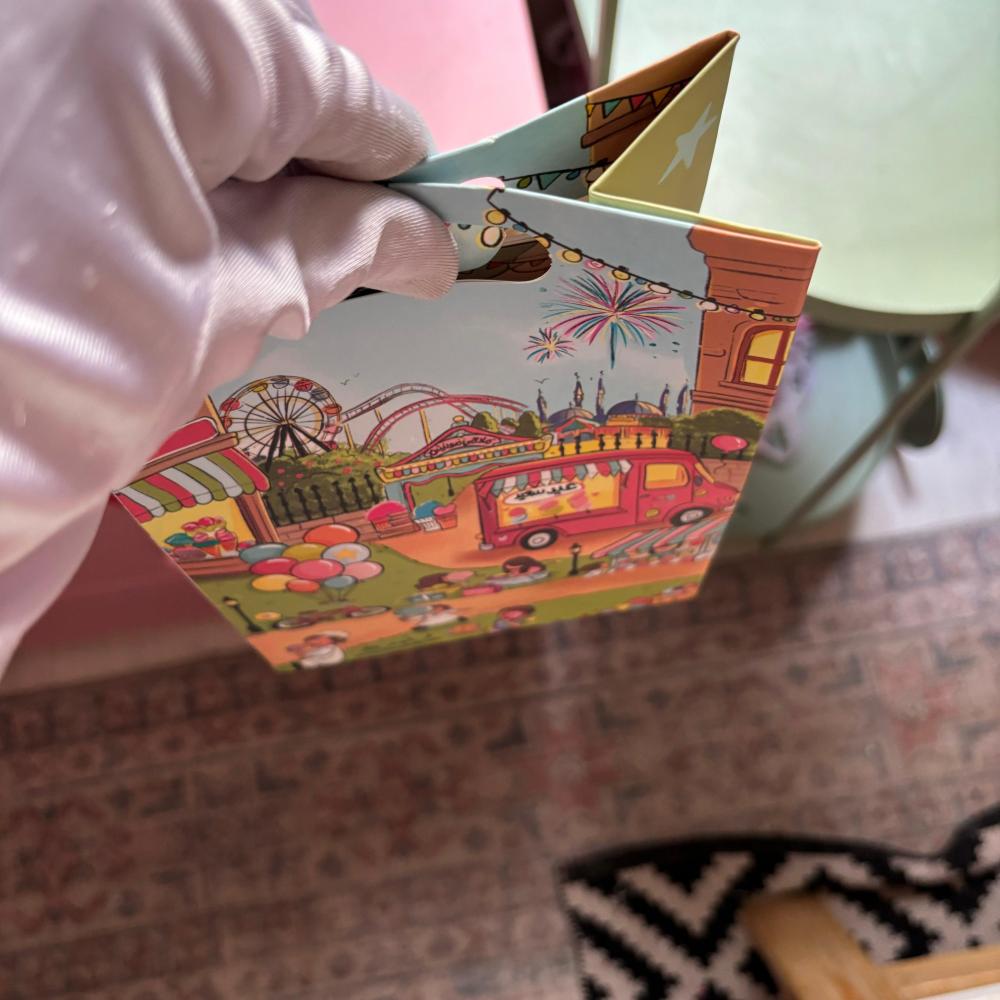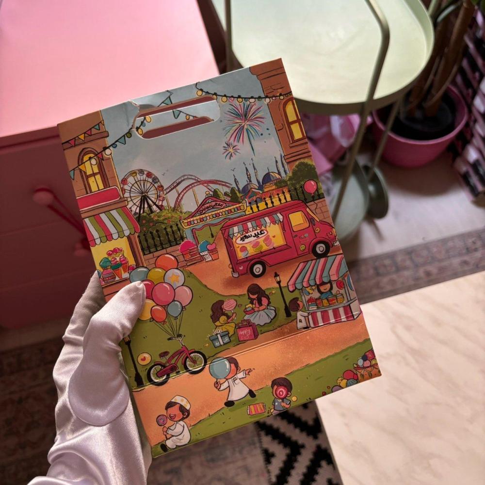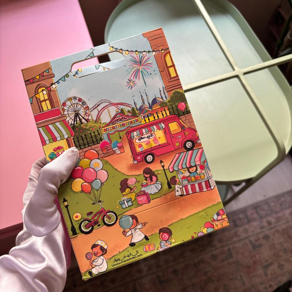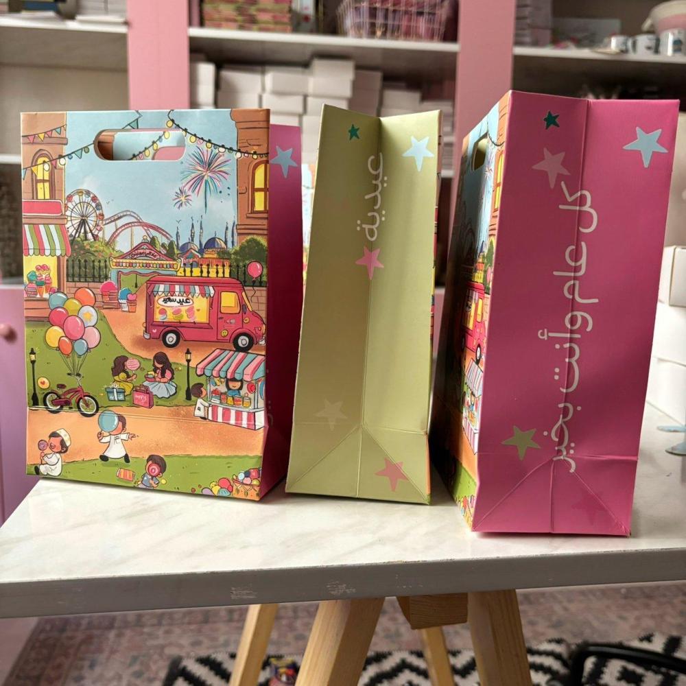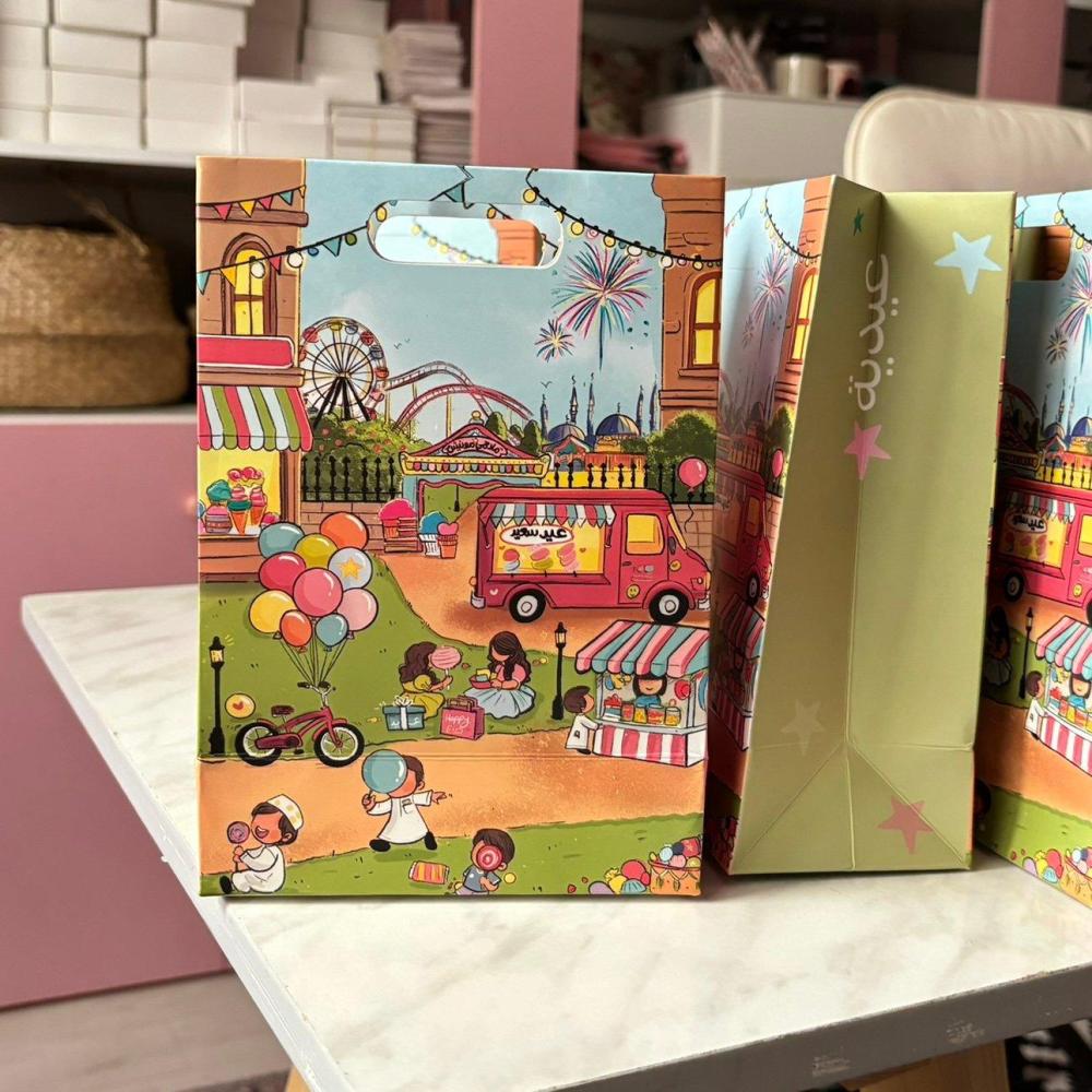 يوجد خانة على جنب الكيس مكتوب فيها ( عيدية … ) بإمكانك كتابة اسم طفلك بنفسك