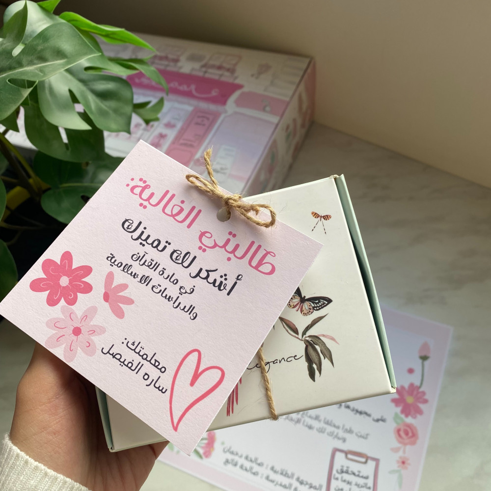 يأتي المنتج مغلف من الداخل والخارج بخيط خيش وكرت باسم المناسبة