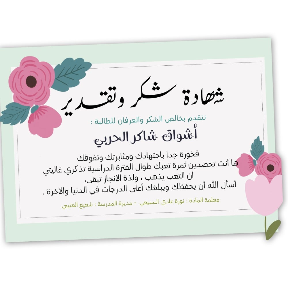 فخورة جدا باجتهادك ومثابرتك وتفوقك في مادة ........................ خلال الفصل الدراسي ........................ 144 هـ