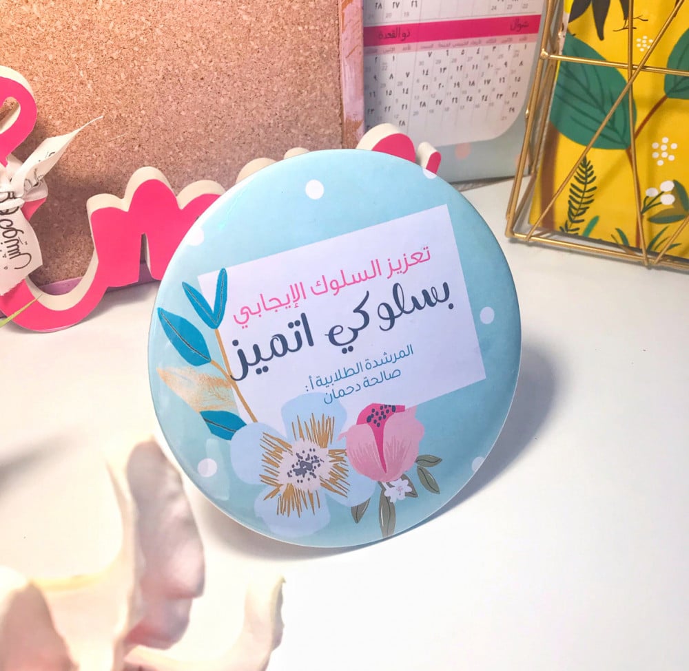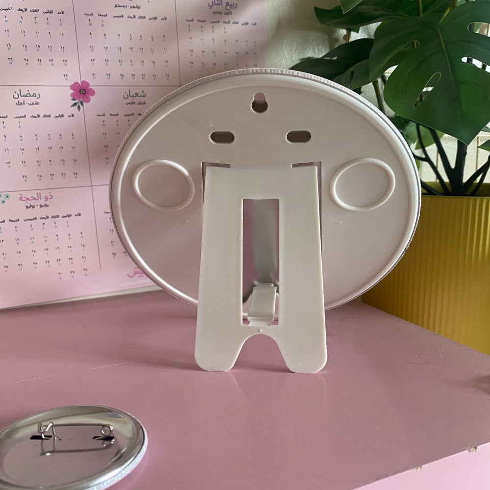 يوجد بالخلف ستاند للتثبيت على سطح الطاولة - ومغناطيس - وتعليقة على الجدار