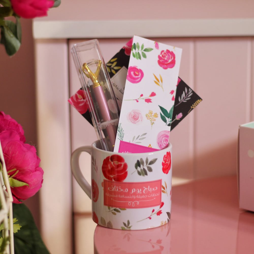 الكوب الوردي بجهة اليمين مقاس ميني / واليسار كوب الحجم العادي المعروف